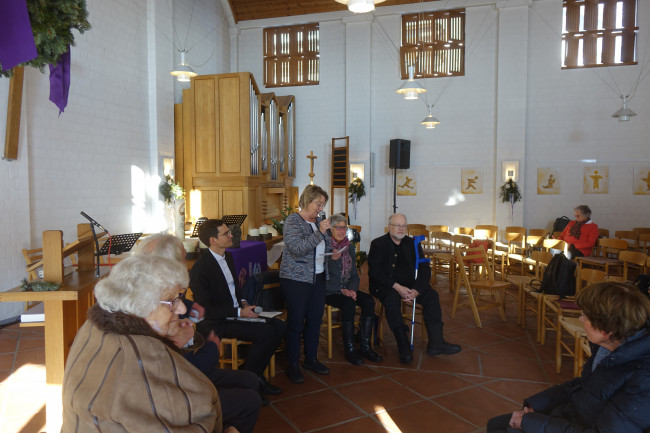 Vieles wäre noch zu erzählen gewesen; Christel Obermüller, die Moderatorin, verwies auf die Ausstellung im 1. Stock des Kirchengebäudes, wo Isabel Kriner und Heidi von Breitenstein viel Informatives zusammengetragen hätten.